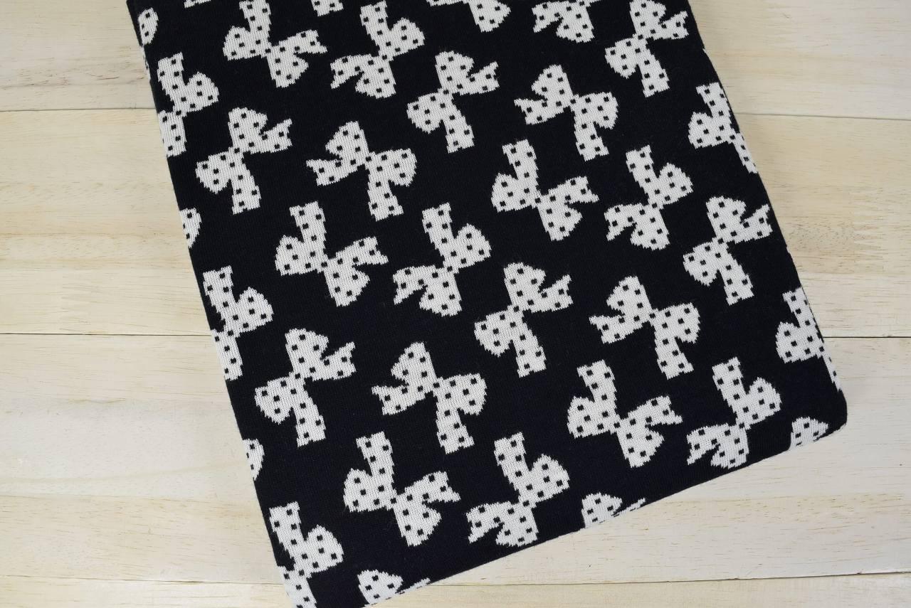 リバーシブルジャガードニット生地 ドットリボン柄 色:黒/アイボリー