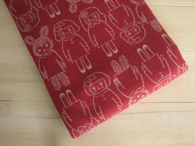 リバーシブルジャガードニット生地 アンティークドール柄 色:カシス/フレンチピンク