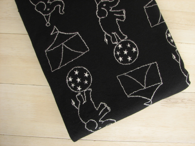 リバーシブルジャガードニット生地 サーカスエレファント柄 色:黒/アイボリー