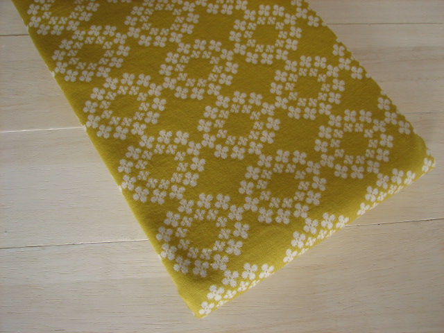 リバーシブルジャガードニット生地 フラワーリング柄 色:ミモザ/アイボリー
