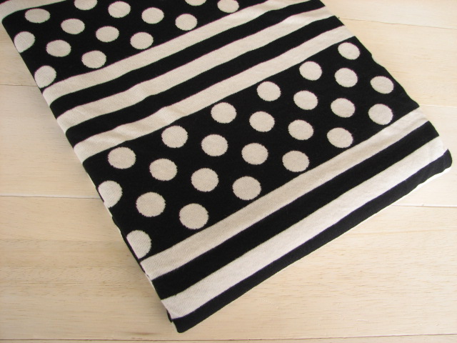 リバーシブルジャガードニット生地 ドット&ボーダー柄 色:黒/アイボリー