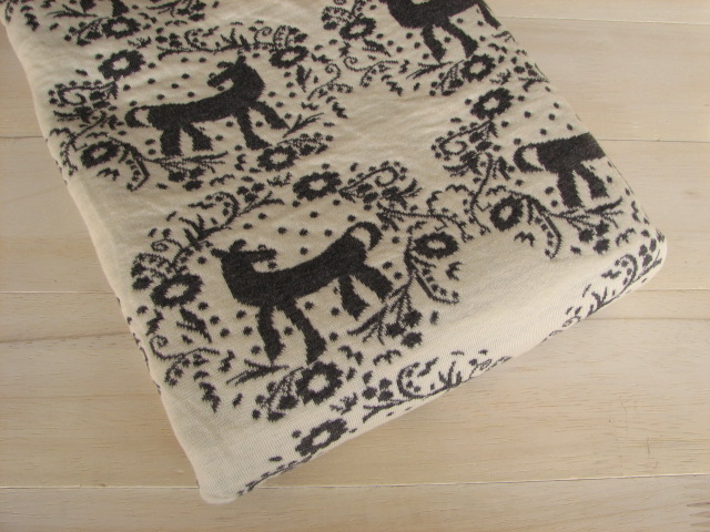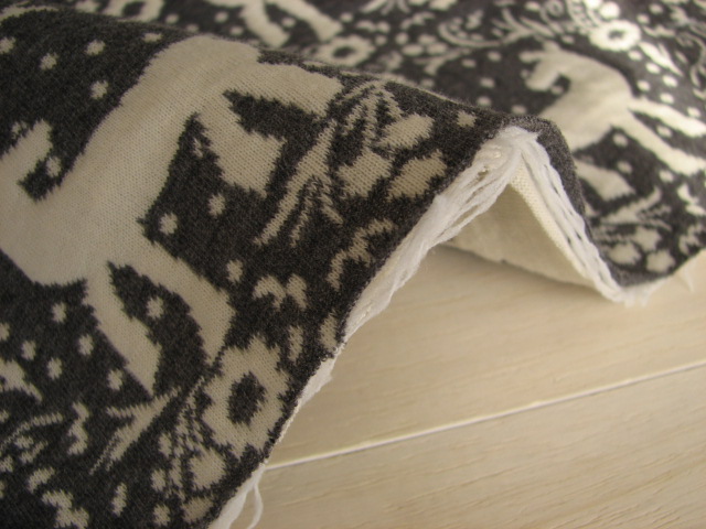 リバーシブルジャガードキルトニット生地 ウインターホース柄          色:ダーク杢グレー/アイボリー