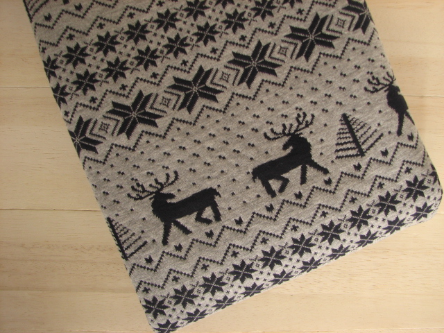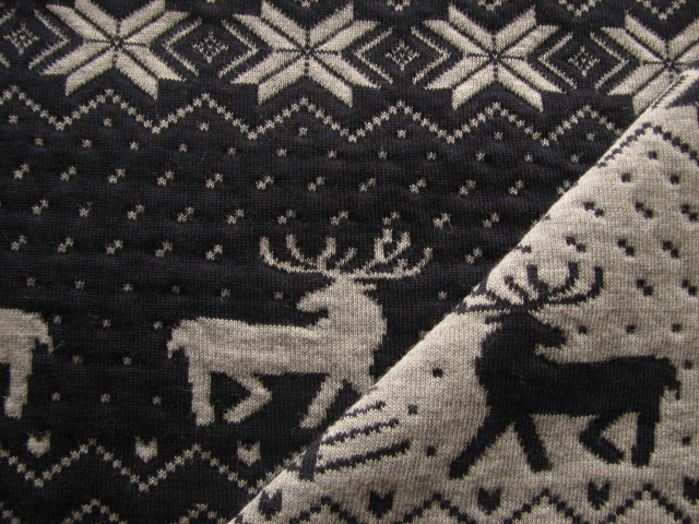 リバーシブルジャガードキルトニット生地 ノルディック柄          色:ネイビー/杢グレー