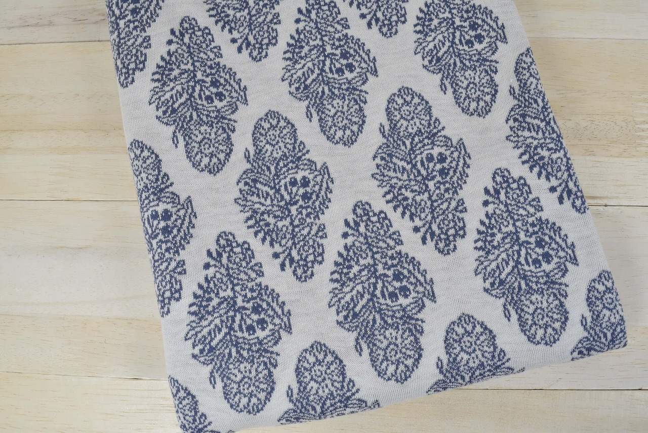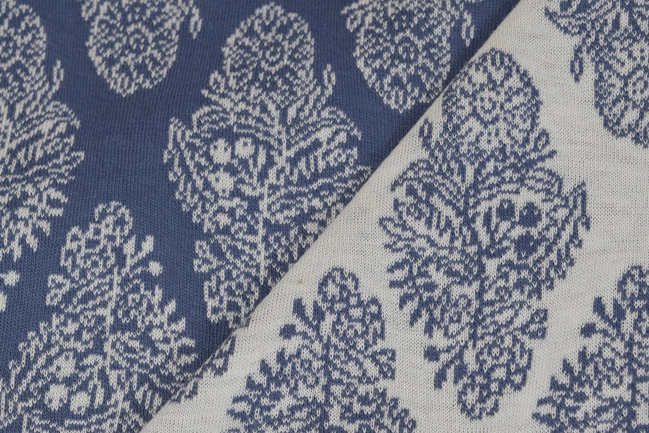 リバーシブルジャガードニット生地 ユヌフルール柄            色:ブルーグレー/アイボリー