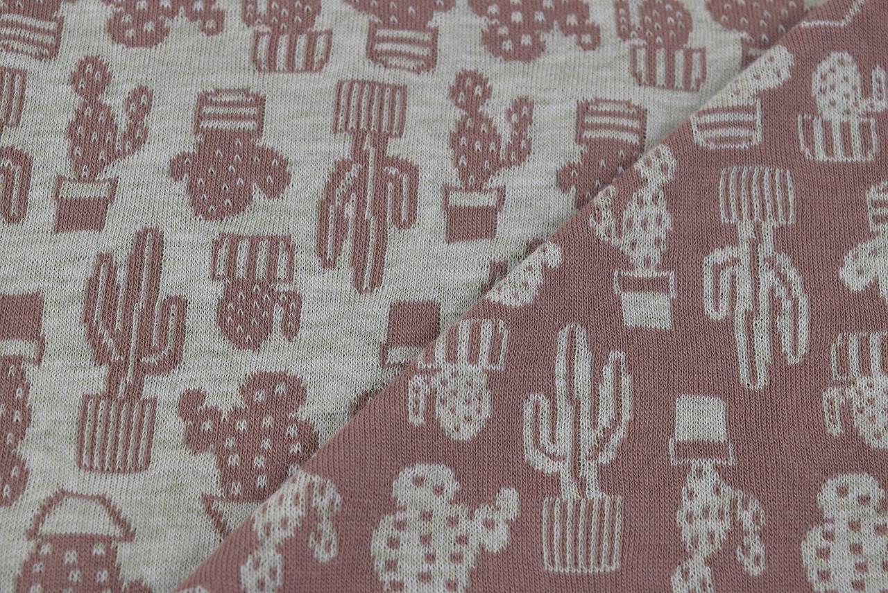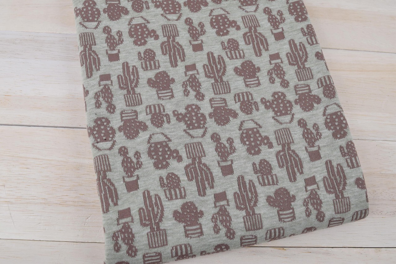 リバーシブルジャガードニット生地 ミニサボテン柄         色:ココア/ライトグリーン杢