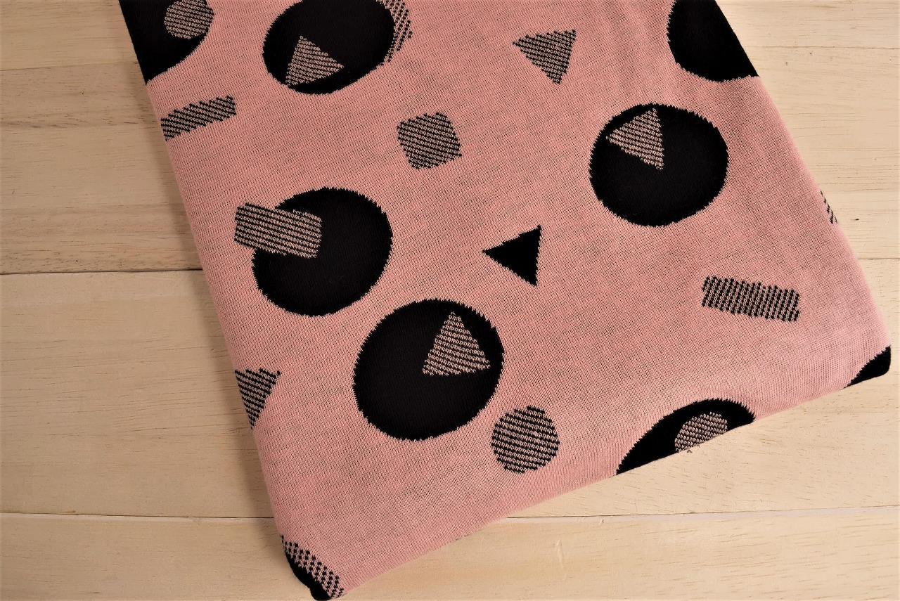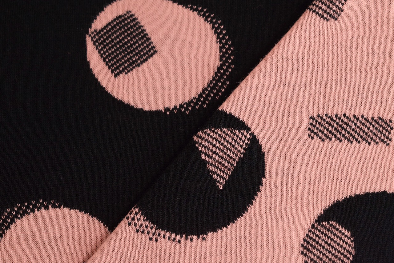 リバーシブルジャガードニット生地 ピチカート柄           色:黒/コーラルピンク