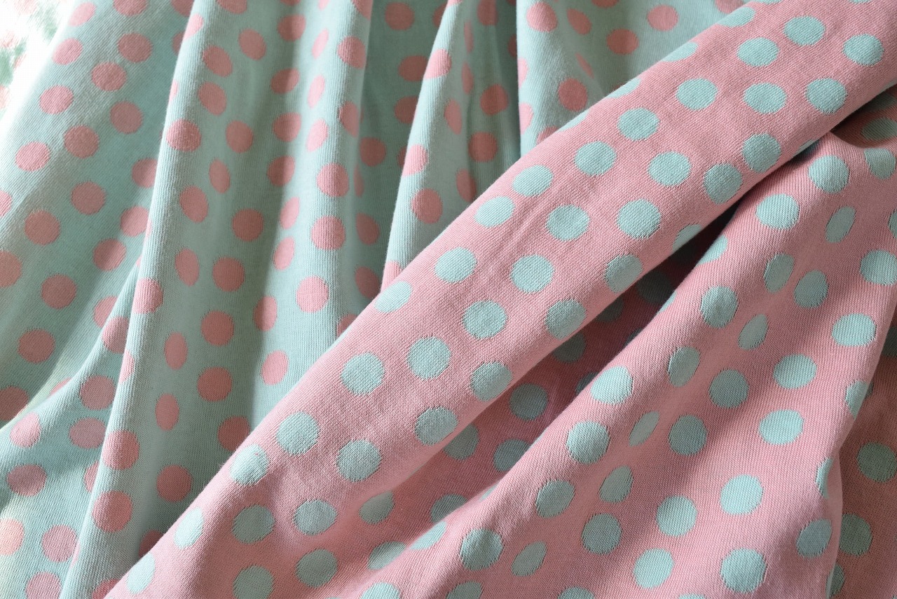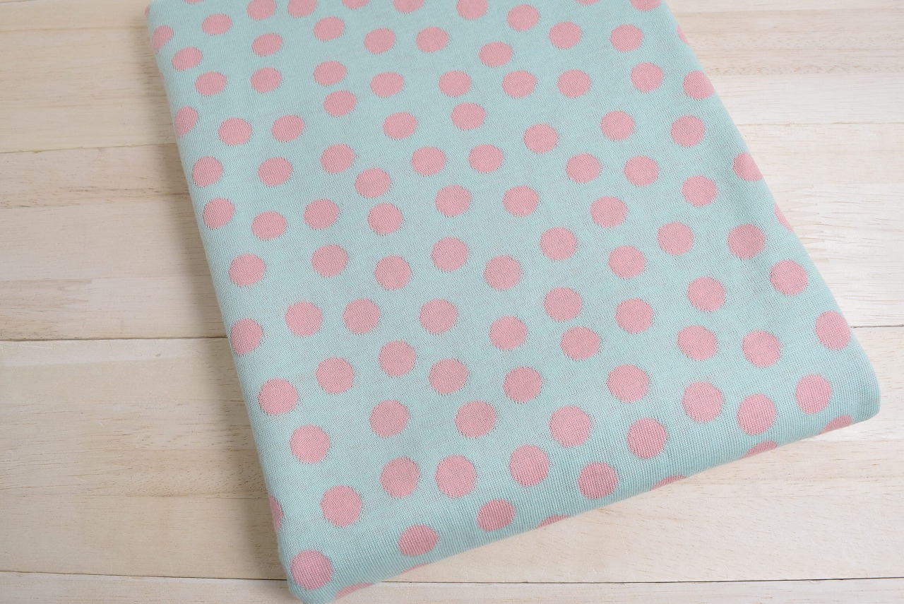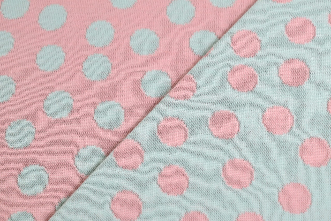 リバーシブルジャガードニット生地 ドロップキャンディ柄              色:ミント/コーラルピンク