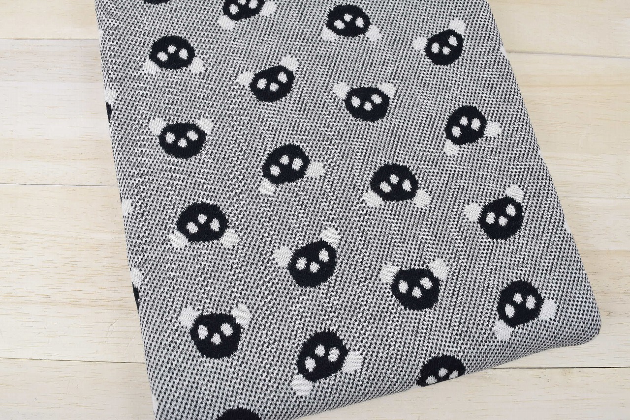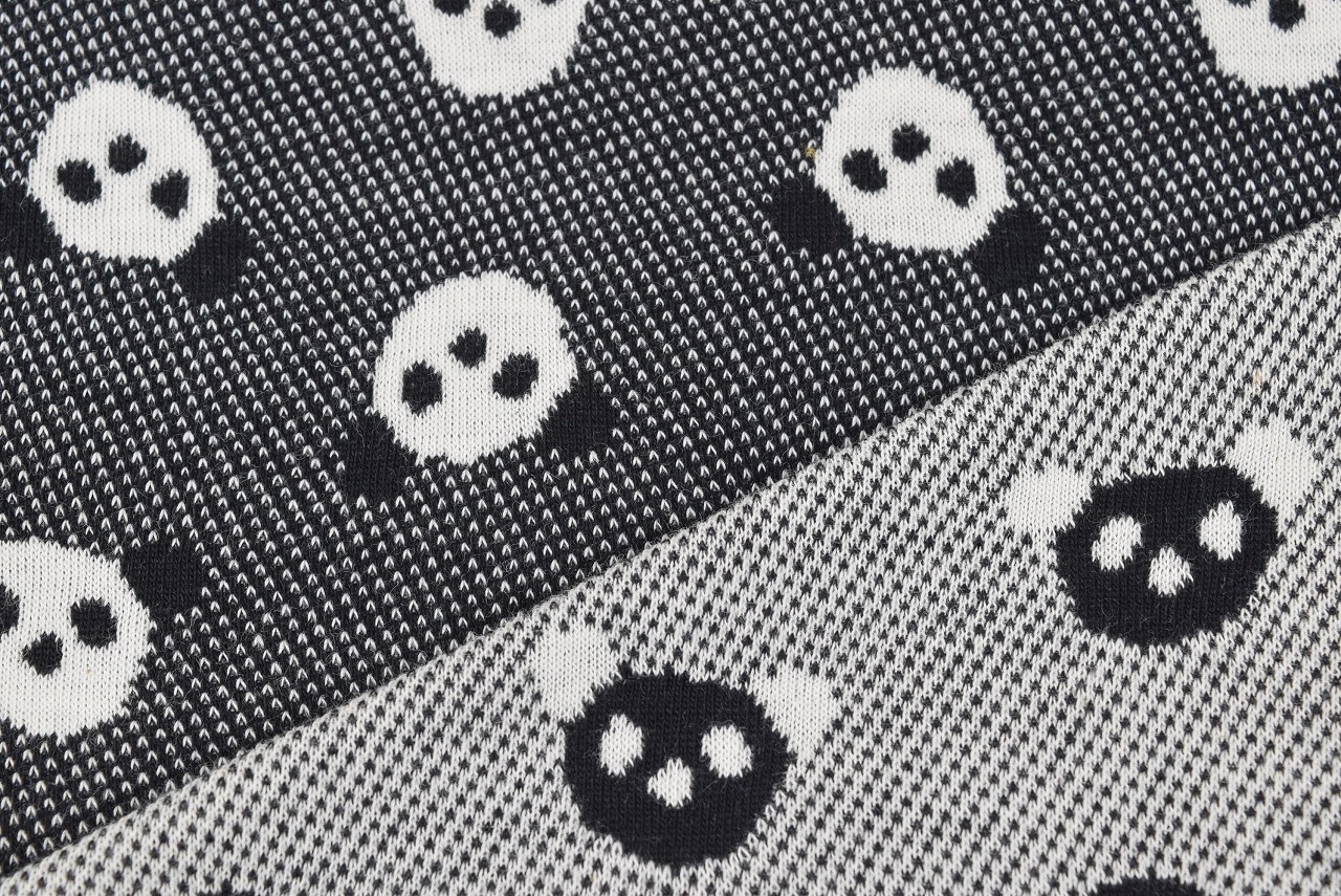 2025年11月下旬以降お届け!予約販売リバーシブルジャガードニット生地 キャンディパンダ柄            色:黒/アイボリー