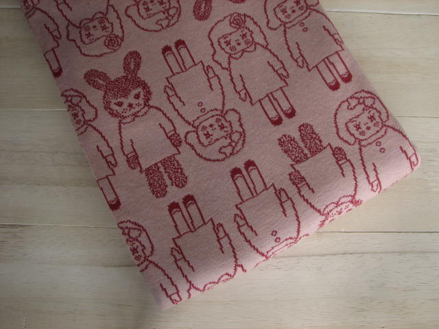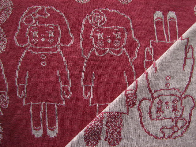 リバーシブルジャガードニット生地 アンティークドール柄            色:カシス/フレンチピンク
