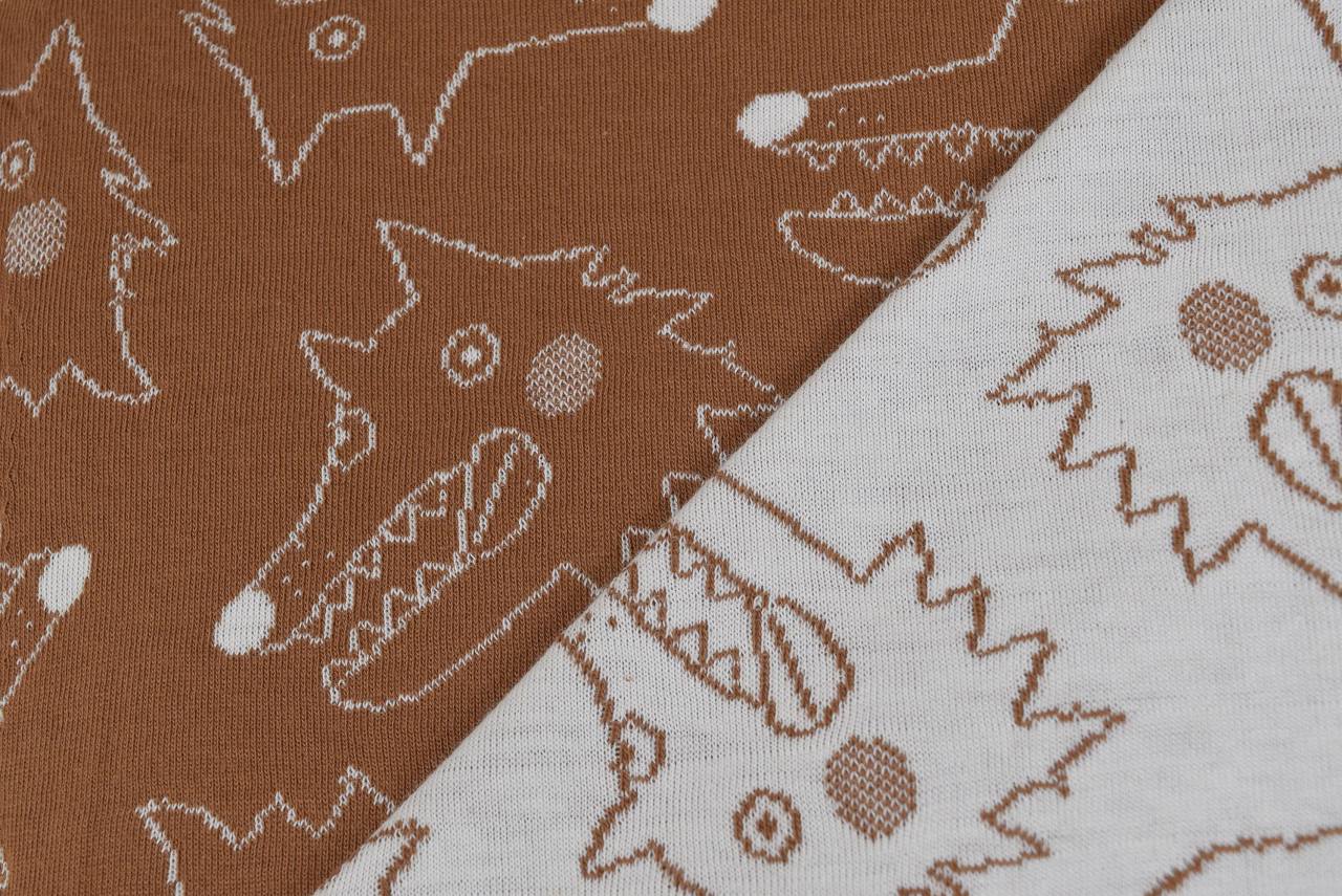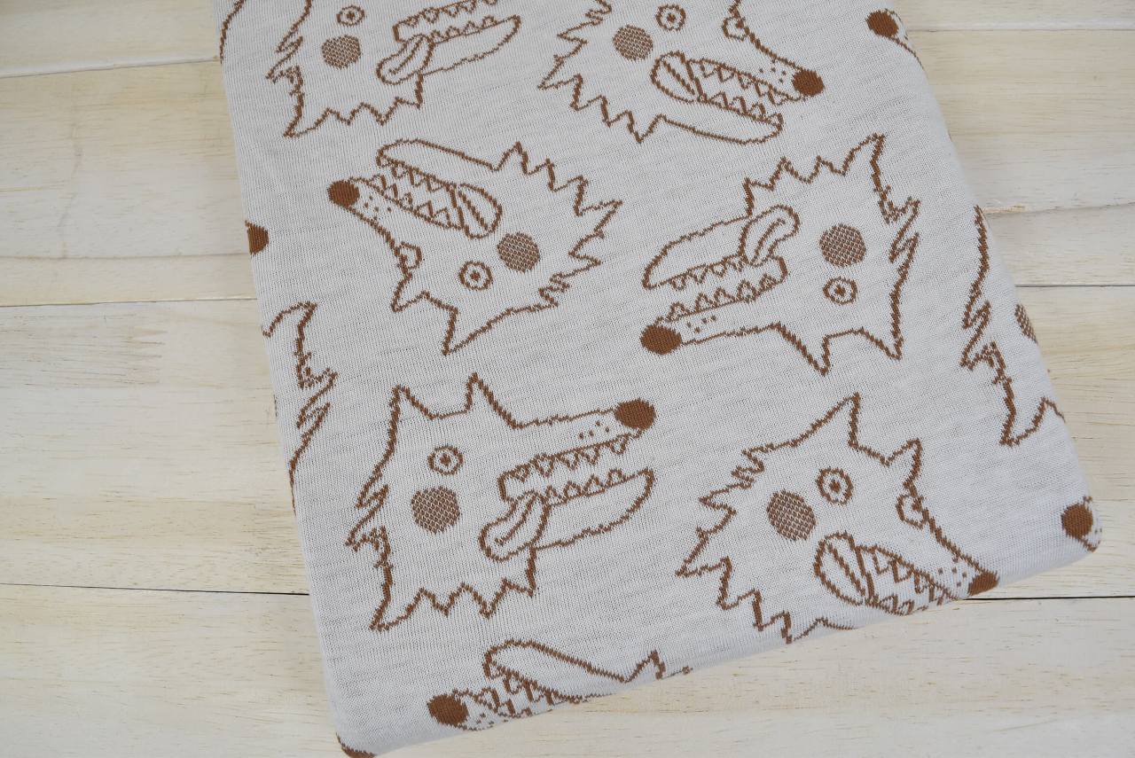 リバーシブルジャガードニット生地 おおかみ柄               色:メイプル/アイボリー