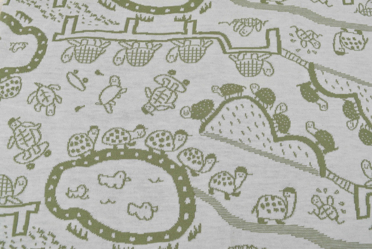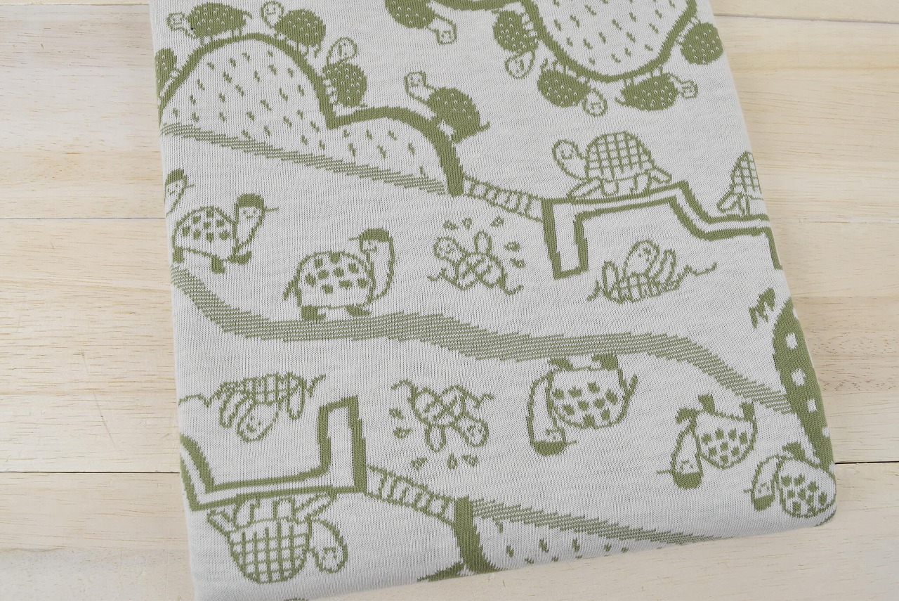 リバーシブルジャガードニット生地 タートルズ柄                 色:グラスグリーン/アイボリー
