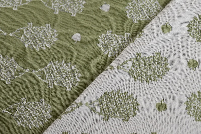リバーシブルジャガードニット生地 ハリネズミ柄                色:グラスグリーン/アイボリー