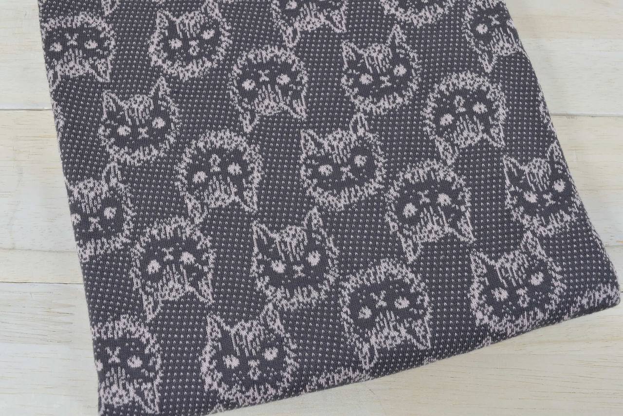 リバーシブルジャガードニット生地 ミミ柄                色:エボニー/フレンチピンク