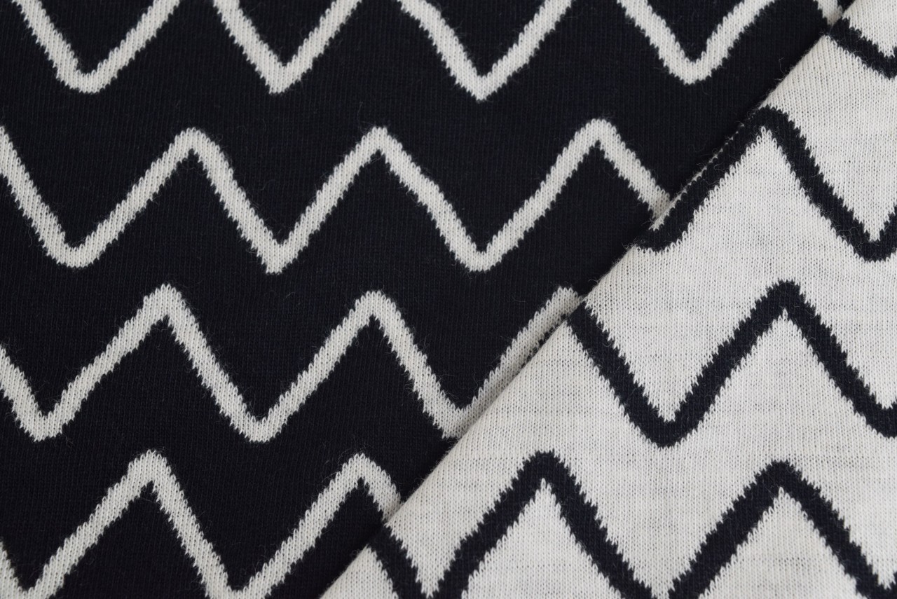 リバーシブルジャガードニット生地 ジグザグステッチ柄         色:黒/アイボリー