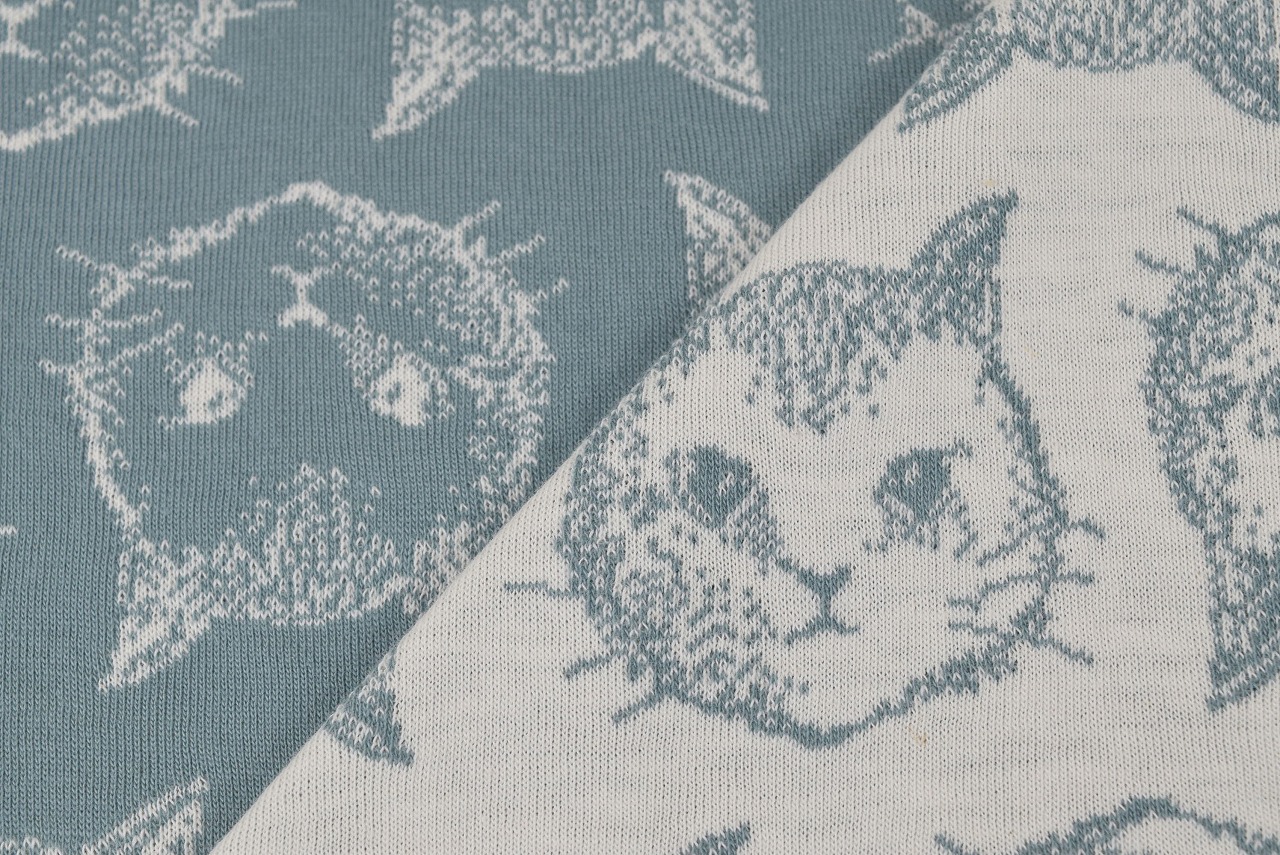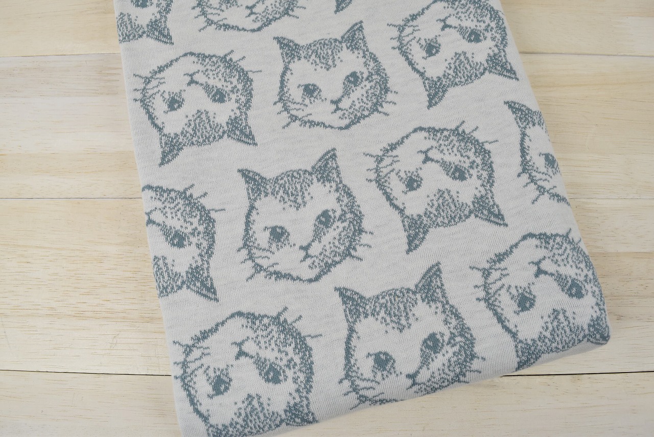 リバーシブルジャガードニット生地 シャトン柄            色:アロエ/アイボリー