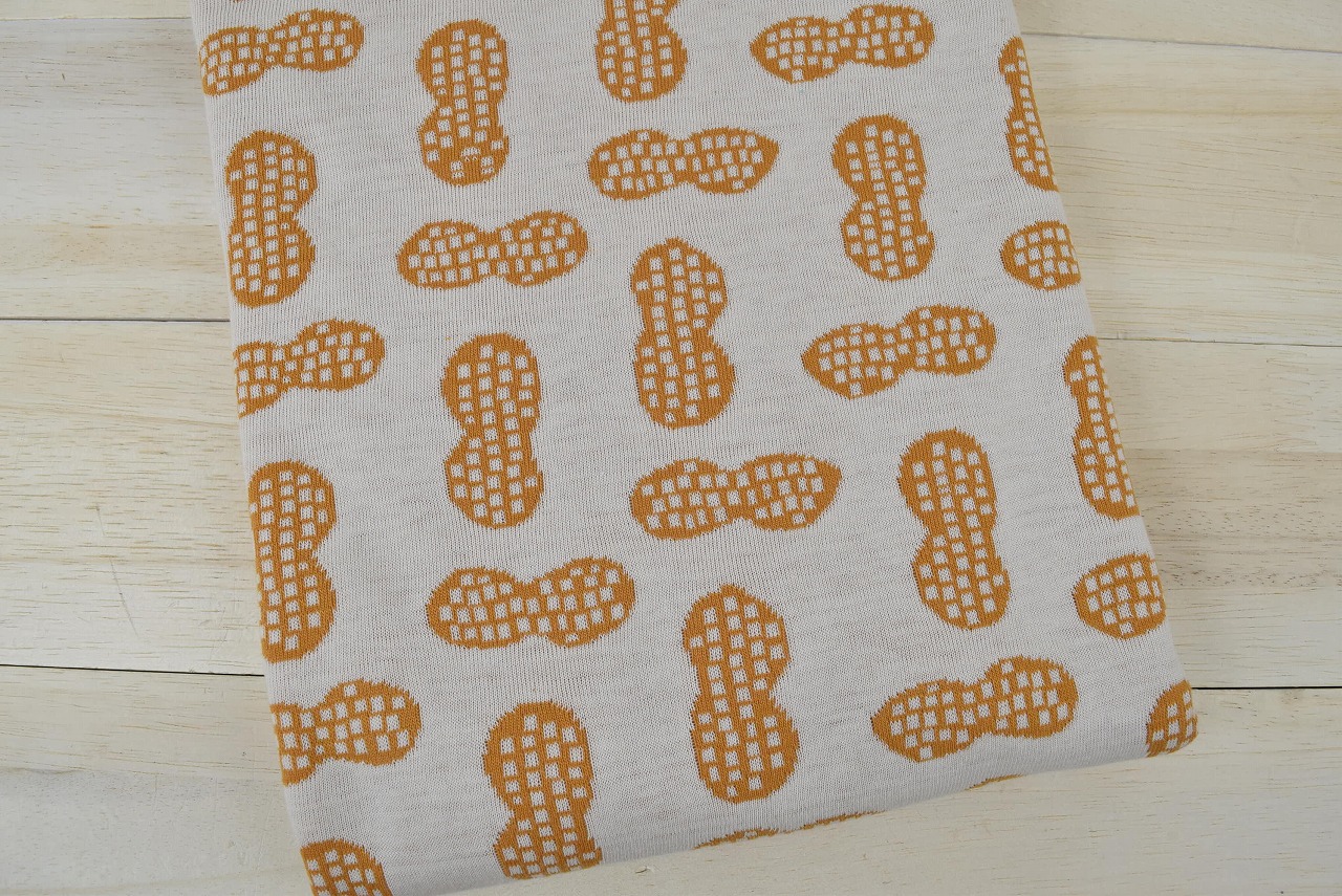リバーシブルジャガードニット生地 ピーナッツ柄         色:コニャック/アイボリー
