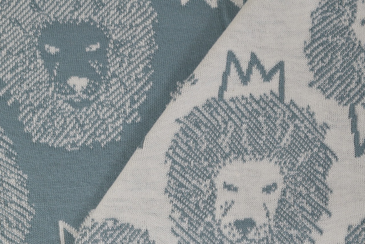 リバーシブルジャガードニット生地 ライオン柄             色:アロエ/アイボリー