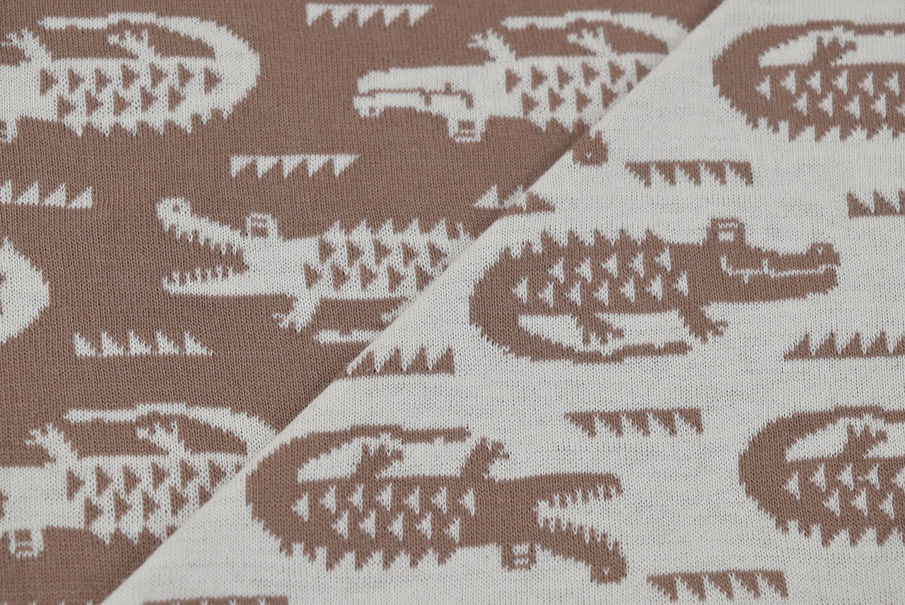 リバーシブルジャガードニット生地 ワニさん柄             色:ココア/アイボリー
