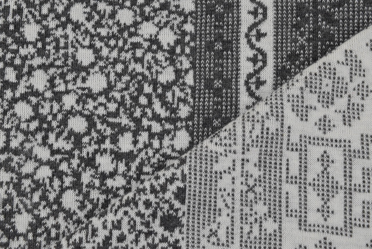 リバーシブルジャガードニット生地 リドー柄              色:ダーク杢グレー/アイボリー