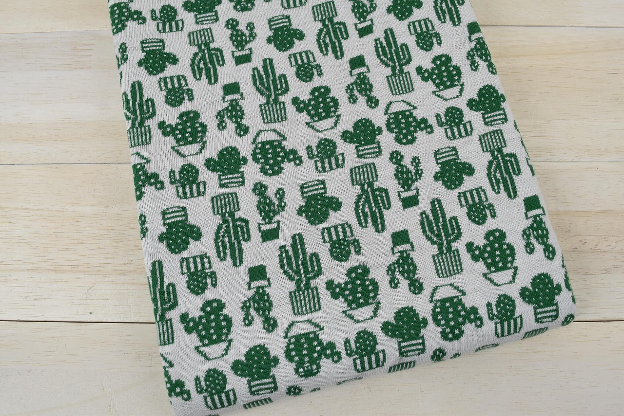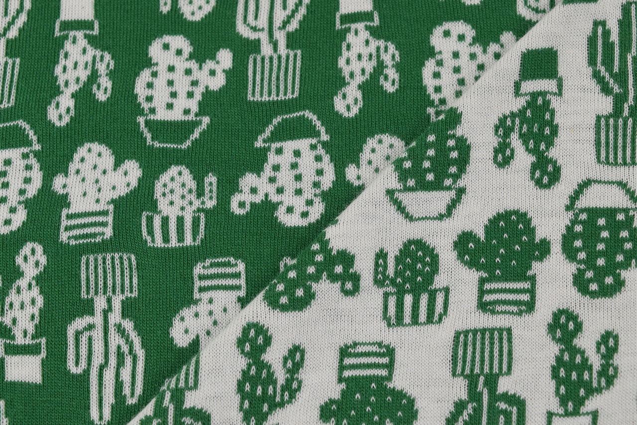リバーシブルジャガードニット生地 ミニサボテン柄         色:ビリジアン/アイボリー
