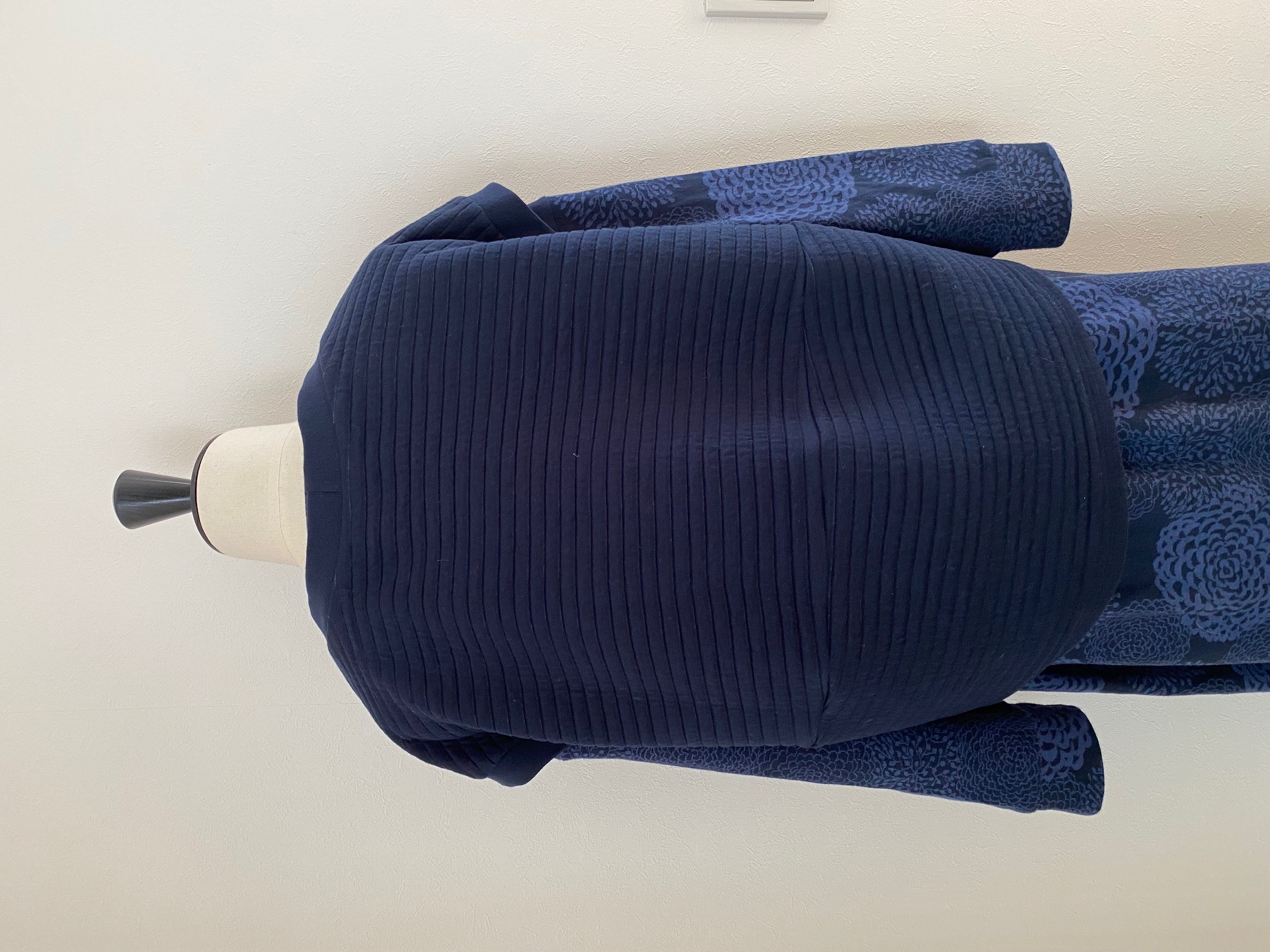 中綿がたっぷり入ったキルトニットを使用して後ろ見頃に切替の入った、
