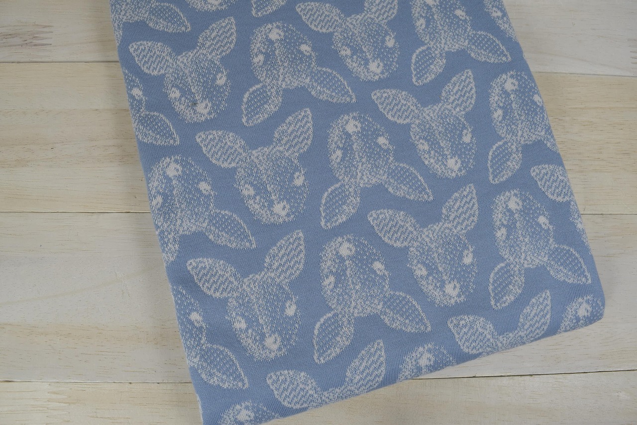 リバーシブルジャガードニット生地 バンビドール柄         色:フラスコ/アイボリー