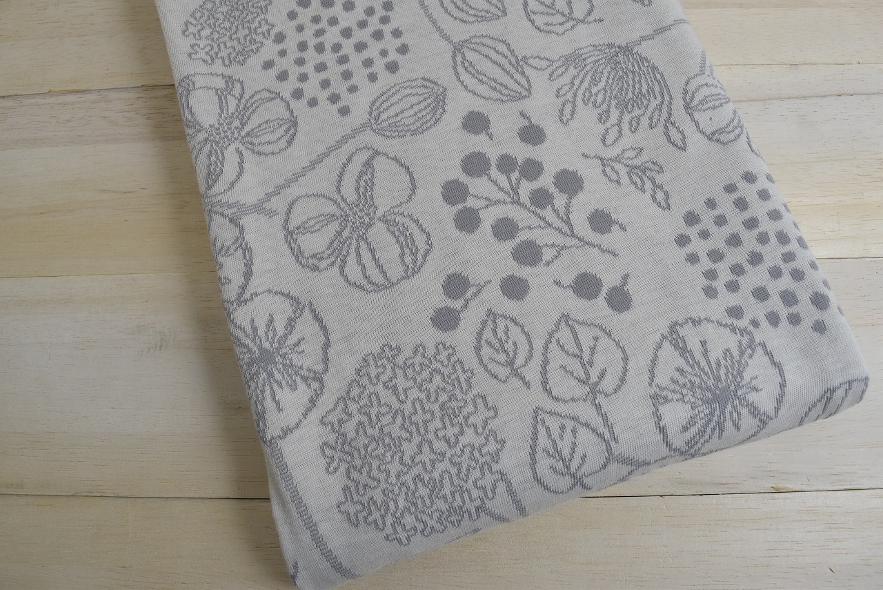 リバーシブルジャガードニット生地 フロリスト柄         色:アッシュ/アイボリー