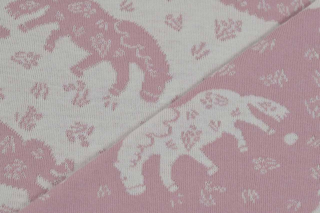 リバーシブルジャガードニット生地 耕す馬のひるやすみ柄           色:フレンチローズ/アイボリー
