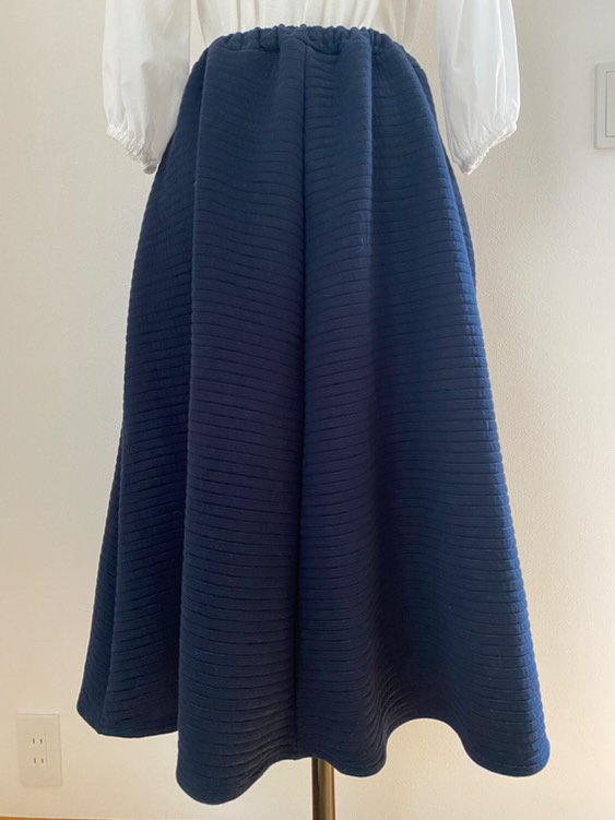キルトニットは保温性が高いので、あたたかなスカートが出来上がります。