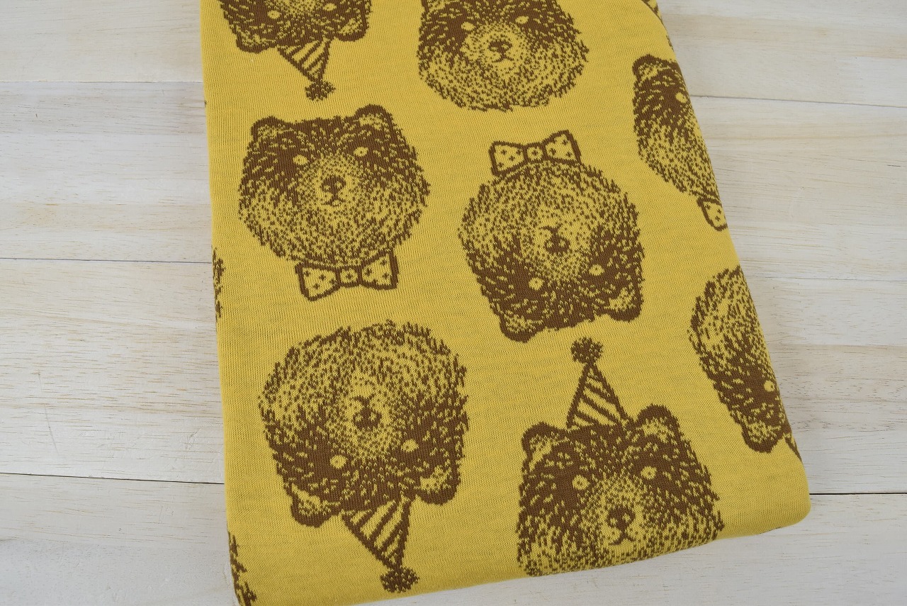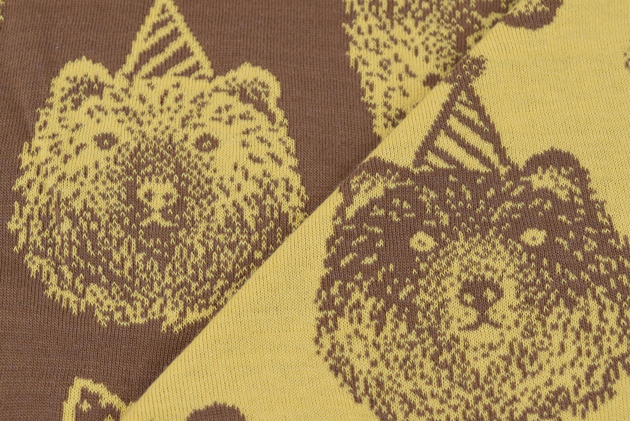 リバーシブルジャガードニット生地 グリズリーベア柄              色:シナモン/イエロー