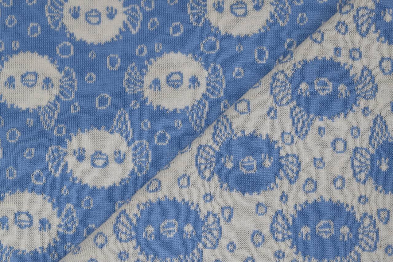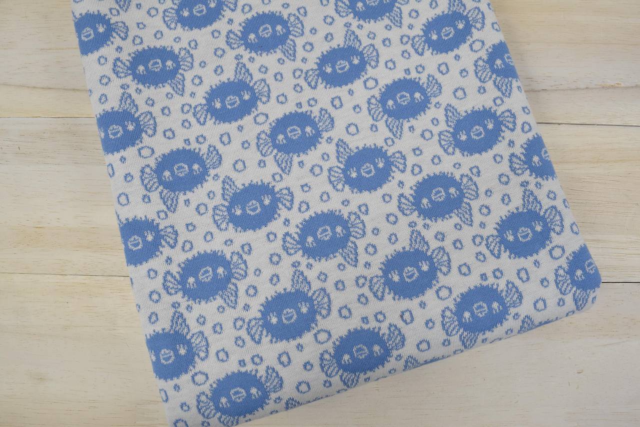 リバーシブルジャガードニット生地 ハリセンボン柄        色:ライトブルー/アイボリー
