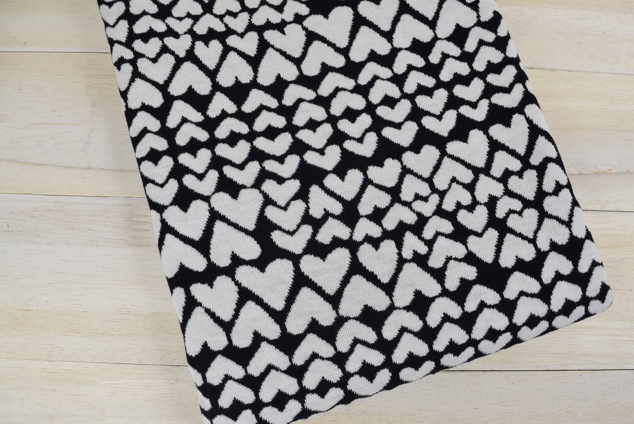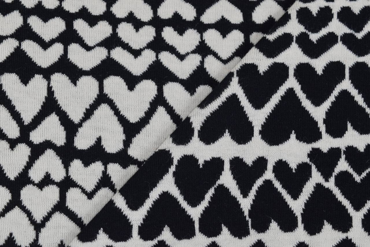 リバーシブルジャガードニット生地 ハートニット柄          色:黒/アイボリー