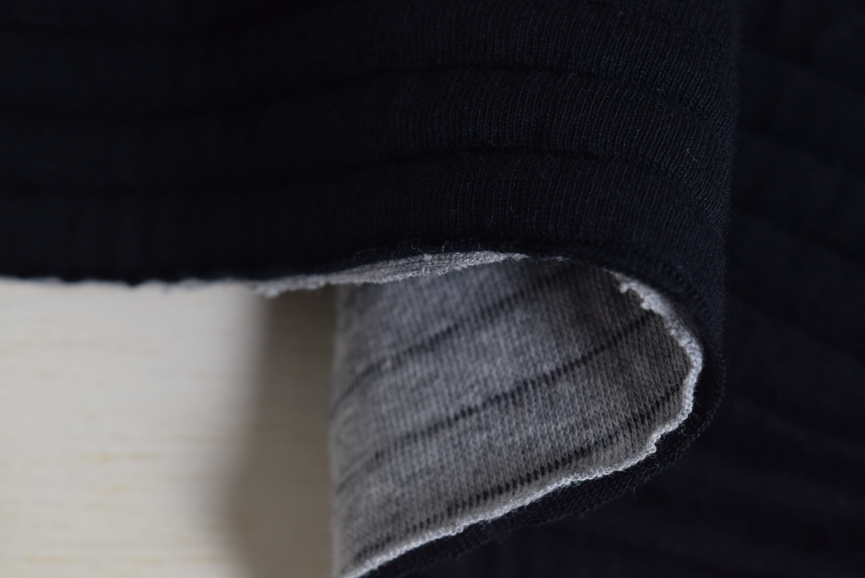 ボーダー状のキルトなので、膨らんでいる部分にポリエステル糸の中綿が入っています。