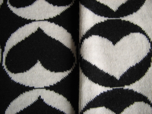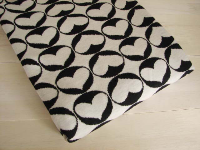 リバーシブルジャガードニット生地 サークルハート柄          色:黒/アイボリー