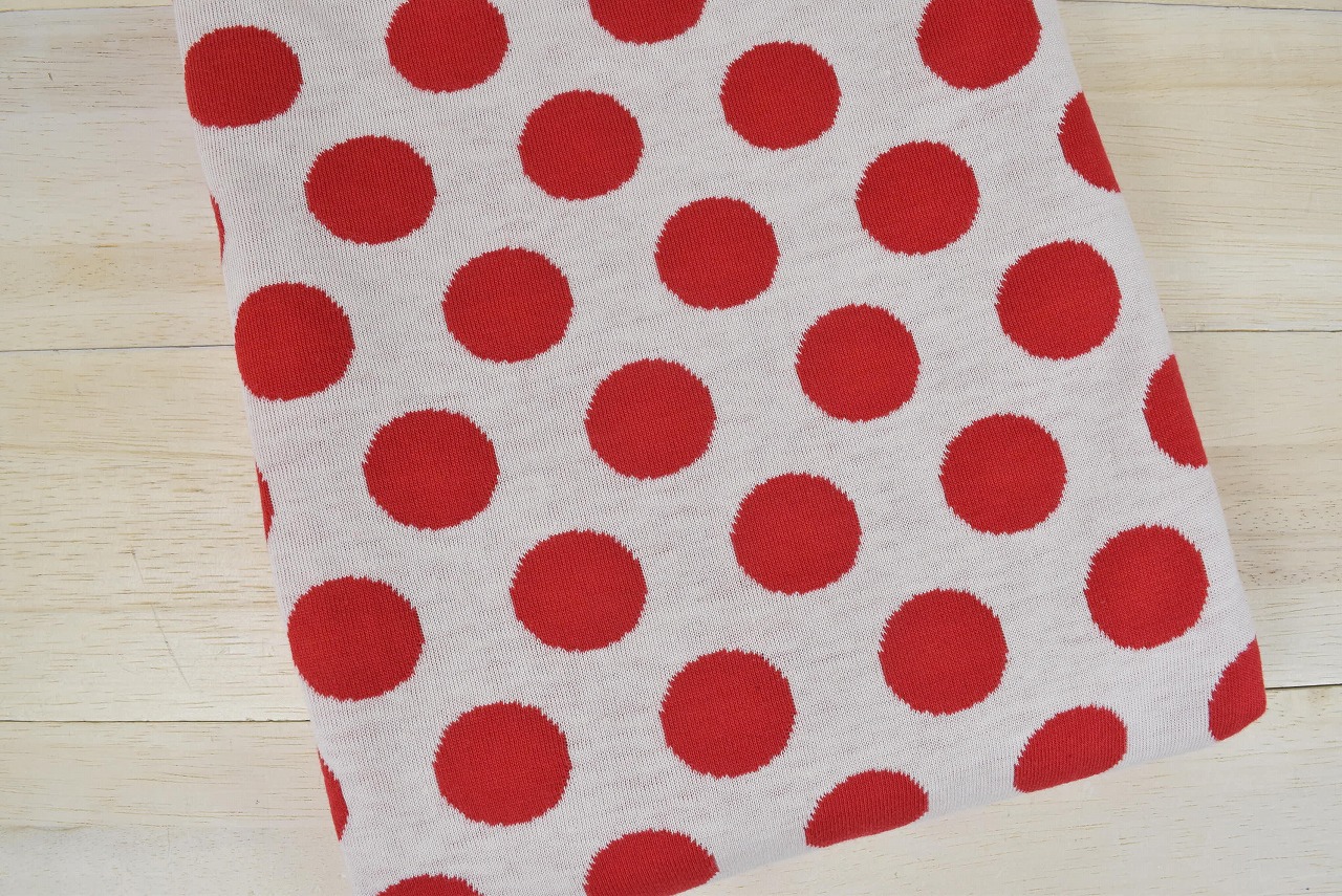 リバーシブルジャガードニット生地 しらたまドット柄        色:赤/アイボリー