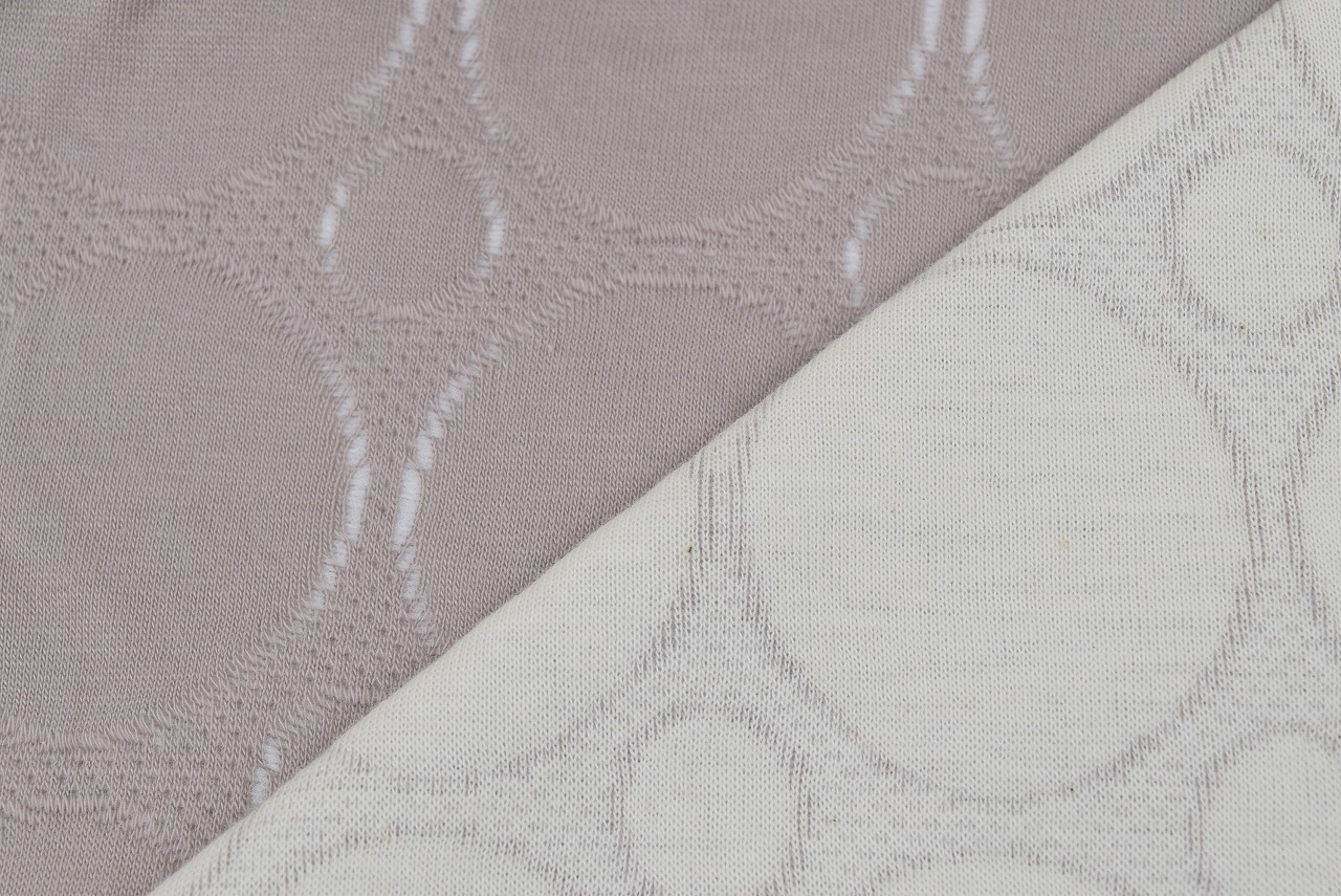 リバーシブルジャガードキルトニット生地 キルトピステ柄           色:トープ/アイボリー(新ロット)