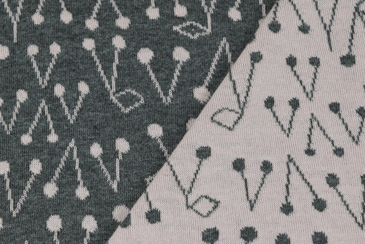 リバーシブルジャガードのニット生地です。