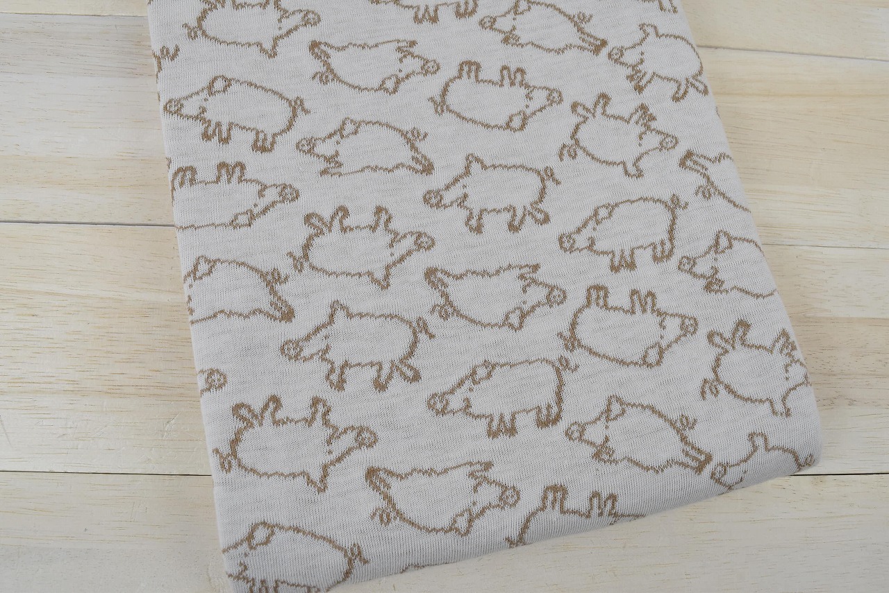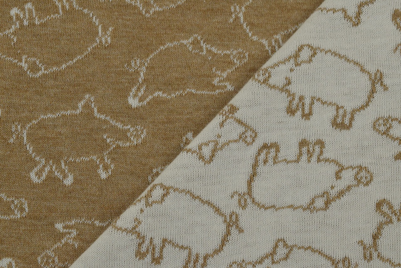リバーシブルジャガードニット生地 ピグレット柄         色:杢キャメル/アイボリー