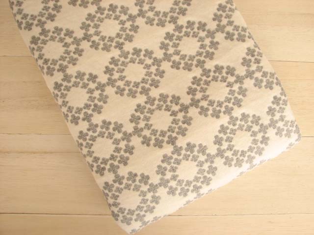 リバーシブルジャガードキルトニット生地 フラワーリング柄  (2.0mカット生地)          色:杢グレー/アイボリー
