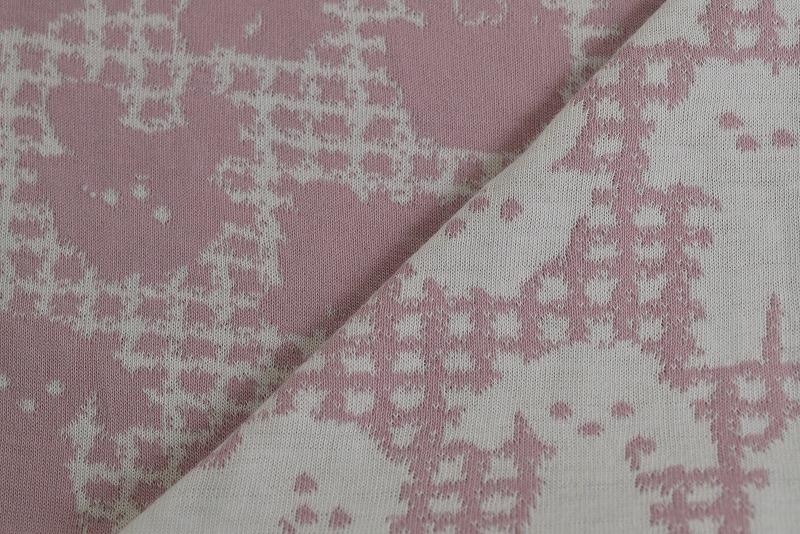 リバーシブルジャガードニット生地 ふわもこプードル柄              色:フレンチローズ/アイボリー