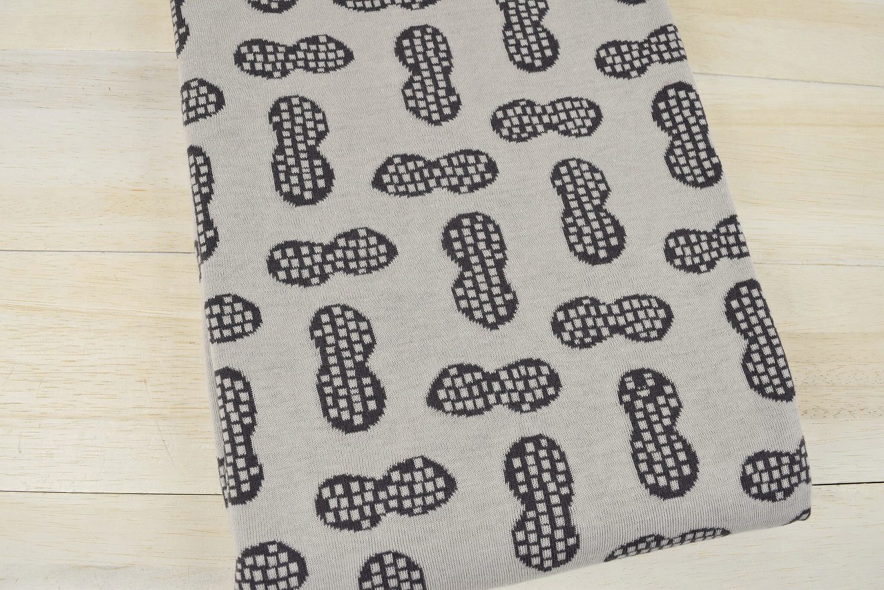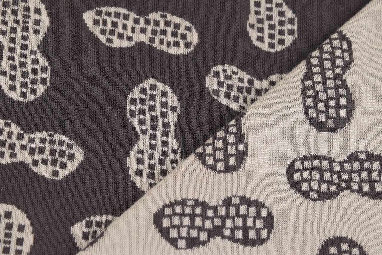 リバーシブルジャガードニット生地 ピーナッツ柄         色:エボニー/カシミヤ