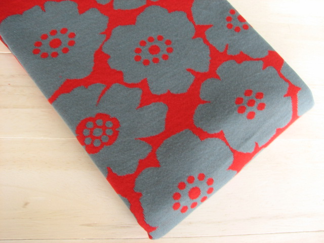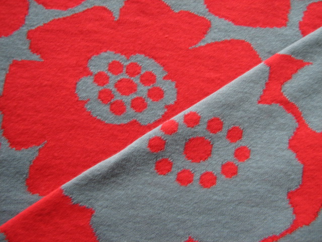 リバーシブルジャガードニット生地 アネモネ柄            色:レッド/アロエ