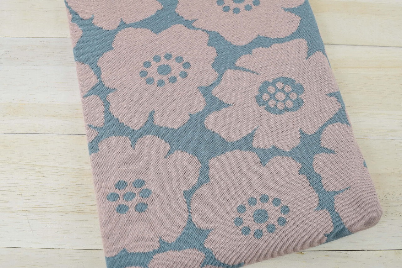 リバーシブルジャガードニット生地 アネモネ柄                  色:アロエ/ピンクベージュ