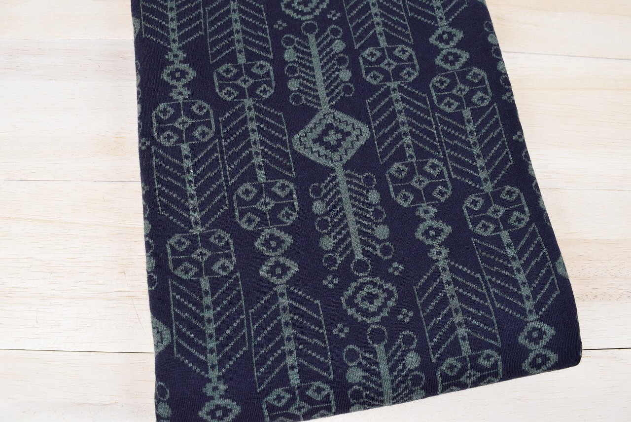 リバーシブルジャガードニット生地 バハル柄              色:ネイビー/杢グリーン