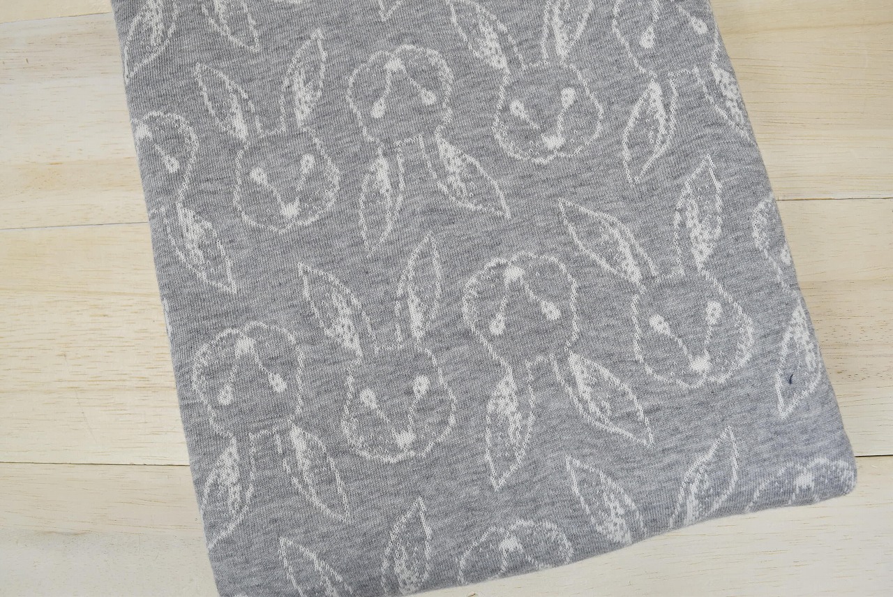 リバーシブルジャガードニット生地 プティラパン柄            色:杢グレー/アイボリー
