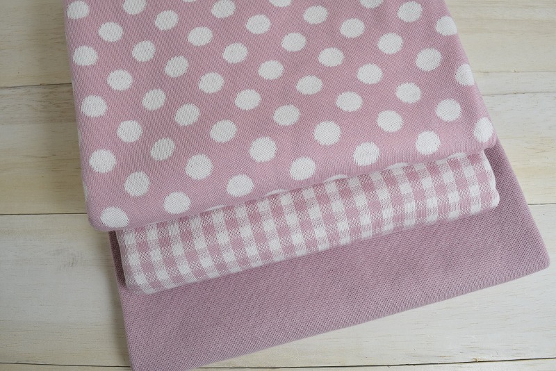 リバーシブルジャガードニット生地 ギンガムチェック柄            色:フレンチローズ/アイボリー
