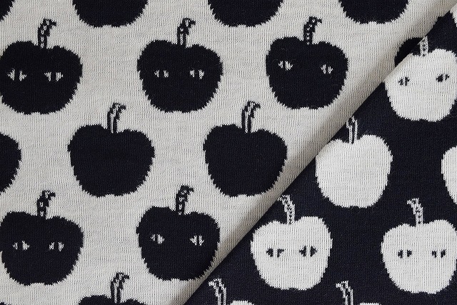 リバーシブルジャガードニット生地 アップルアタック柄         色:黒/アイボリー
