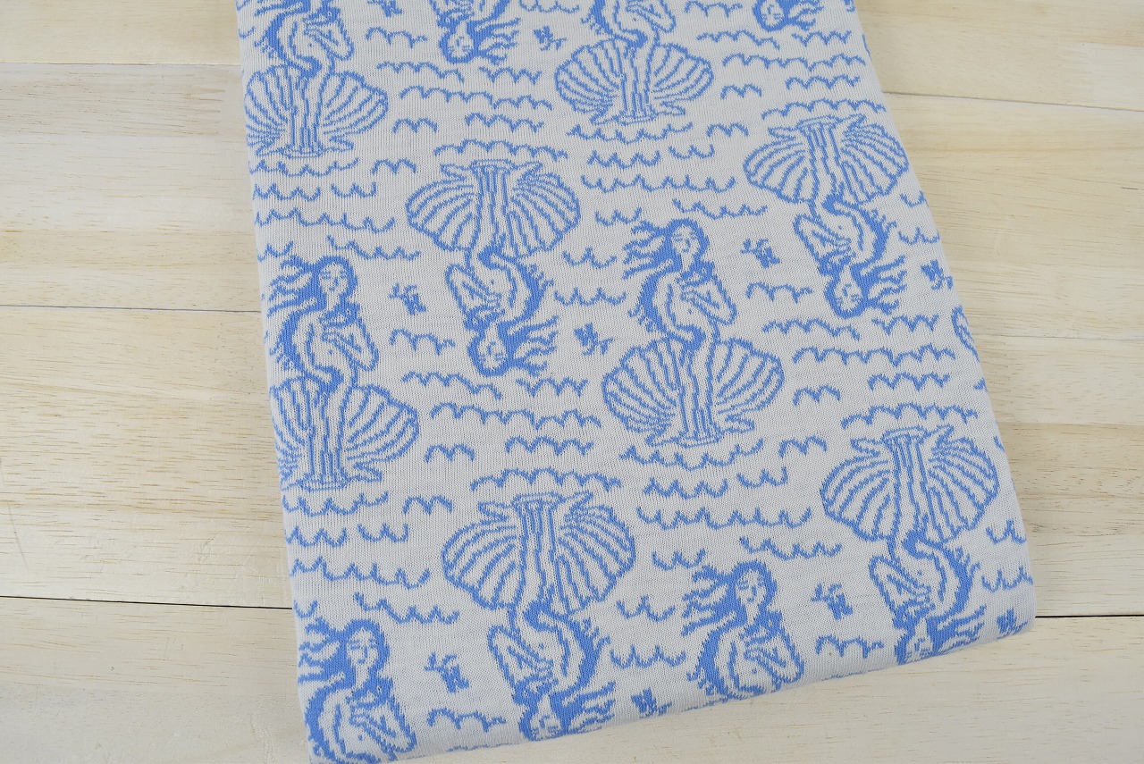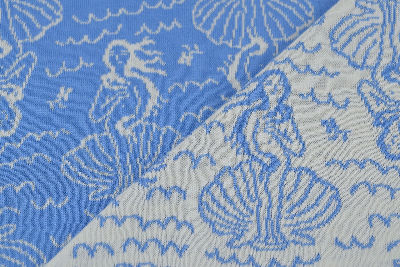 リバーシブルジャガードニット生地 ヴィーナス柄            色:スカイブルー/アイボリー