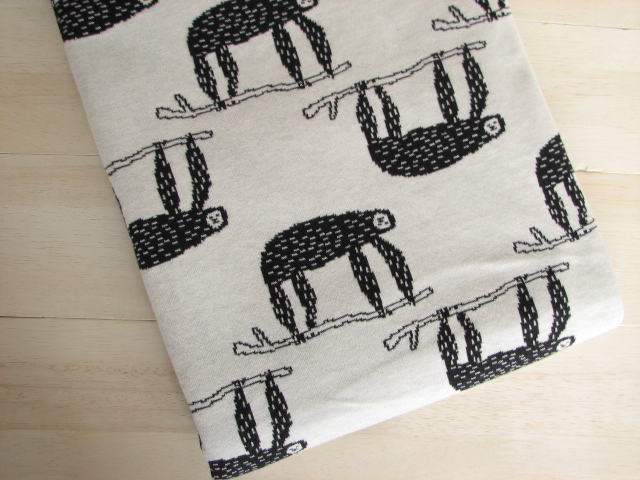リバーシブルジャガードニット生地 なまけもの柄          色:黒/アイボリー
