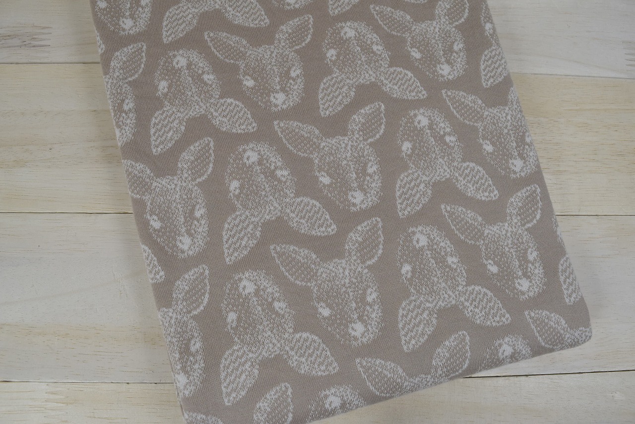 リバーシブルジャガードニット生地 バンビドール柄         色:カシミヤ/アイボリー